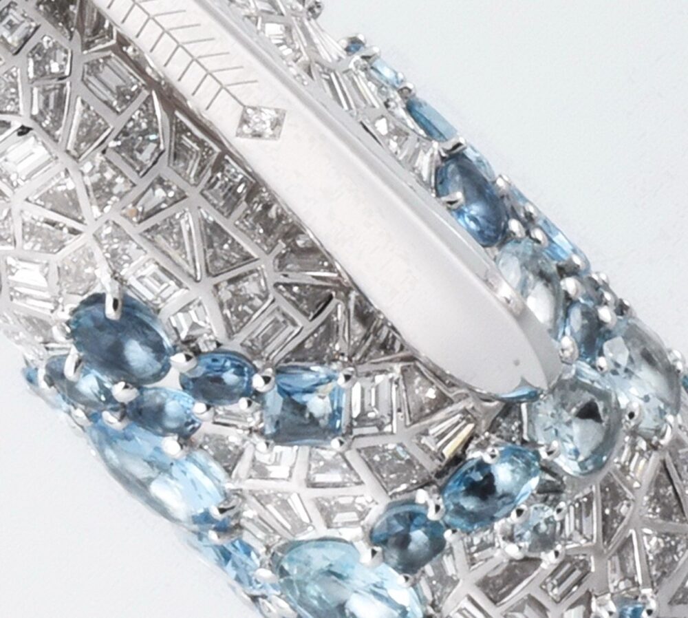ロアール・アムンセン リミテッドエディション1には「氷」というモデル名が付いている。参考価格は2億2062万円。北極の氷の世界と探検家アムンセンの世界観を最高級のダイヤモンドとサファイアで表現している。天冠にはバゲットカットした四角のダイヤを半球状に配置してイヌイットの住居を再現し、首軸には極地を含めた世界地図をダイヤで描いている。天冠を指で回すと外れて、中から5.1カラットの巨大なダイヤが出現する。