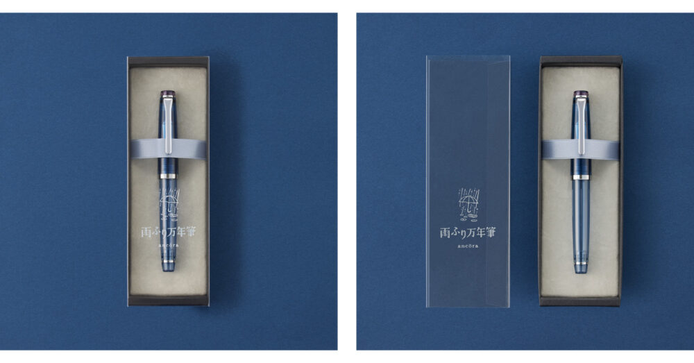 2021年より、銀座本店でのみ、雨の日限定で販売してきたアンコーラオリジナル万年筆用ボトルインク「雨ふり」は、現在も大変好評を得ている。今回、同じく「雨ふり」をテーマにした雨の日限定商品として、「レクル 万年筆 雨ふり」と「万年筆用インクコンバーター 雨ふり」が新たにラインアップに加わることとなった。